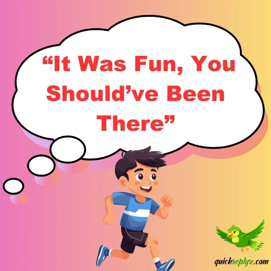 Highlighting that the event was amazing can make the other person feel a little playful regret. It’s fun and lighthearted, perfect for teasing friends while expressing how enjoyable the event was.